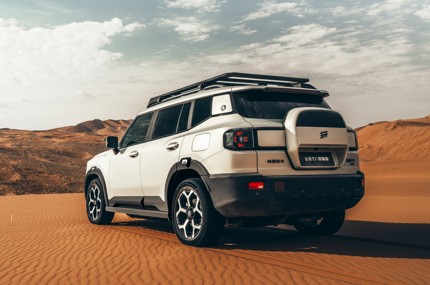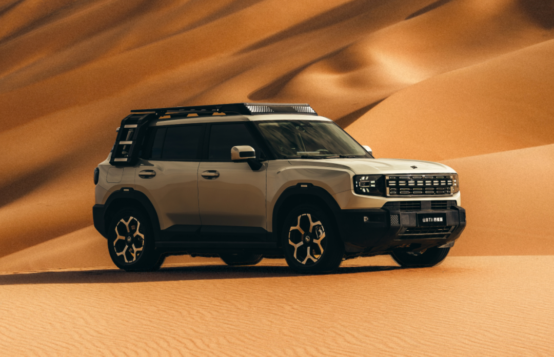 外观采用经典方盒子风格造型,较为方正,配备车顶行李架、传统造型车门外把手、车侧踏板等。