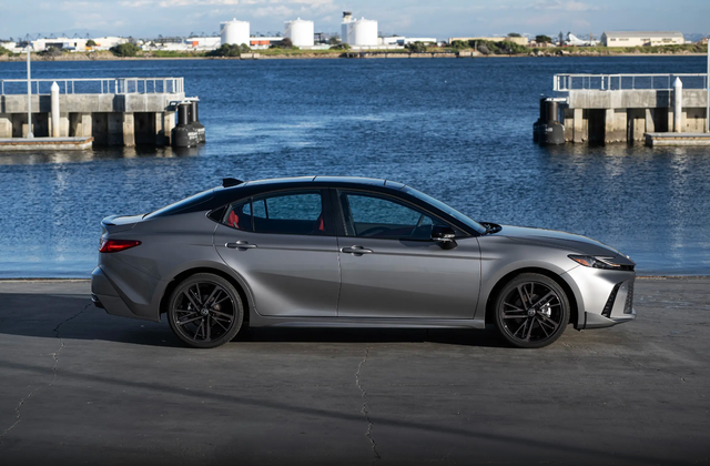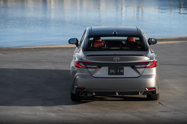 凯美瑞定位中型轿车,整体轮廓还是较为饱满,动感的,该版本轮毂采用黑色刀锋式,符合自身的定位,车顶也采用黑色涂装,提升了车辆的视觉效果,车尾还提供黑色扰流板,尾灯中间还提供品牌字母LOGO,排气采用单边双出式设计。